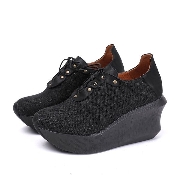 S153 Factory personalized side zipper leather platform high heel sandals ethnic retro handmade first layer leather women Images |